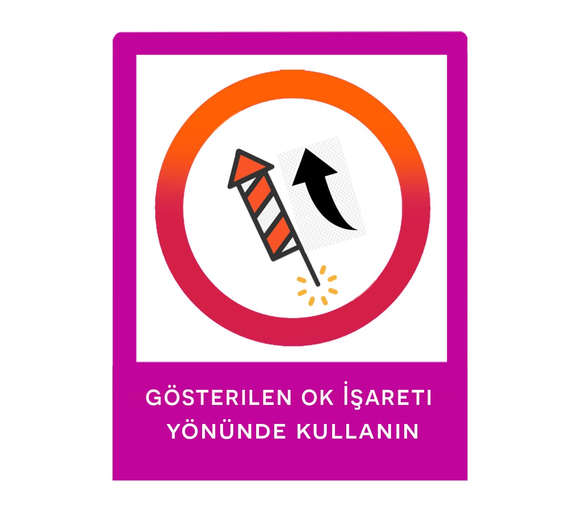 Karikatürde, havai fişeği kullanırken gösterilen ok işaretine uygun olarak kullanmanız gerektiği gösteriliyor. Ok işareti, havai fişeğin hangi yönde patlayacağını ve etki alanını gösterir. Bu talimatlara dikkat ederek, havai fişeği doğru şekilde kullanabilir ve güvenliği sağlayabilirsiniz.